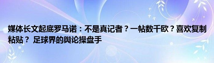 媒体长文起底罗马诺:不是真记者?一帖数千欧?喜欢复制粘贴? 足球界的舆论操盘手