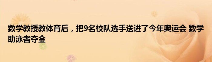 数学教授教体育后,把9名校队选手送进了今年奥运会 数学助泳者夺金