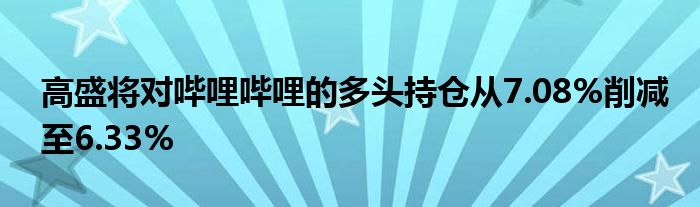 高盛将对哔哩哔哩的多头持仓从7.08%削减至6.33%
