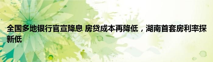 全国多地银行官宣降息 房贷成本再降低,湖南首套房利率探新低