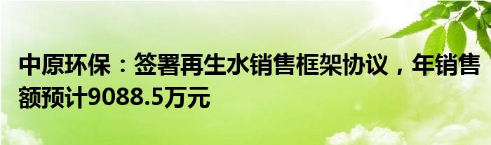 中原环保:签署再生水销售框架协议,年销售额预计9088.5万元