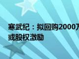 寒武纪公告,公司计划以集中竞价交易方式回购股份,用于员工持股计划或股权激励。回购资金总额不低于2000万元,不超过4000万元,回购价格不 浏览全文>>