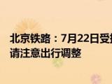 北京铁路:7月22日受持续强降雨影响,这些列车晚点7月22日清晨6点40分,京沪线上的捷地站至大满庄站区间,因遭受连续强降雨天气,影响了列 浏览全文>>
